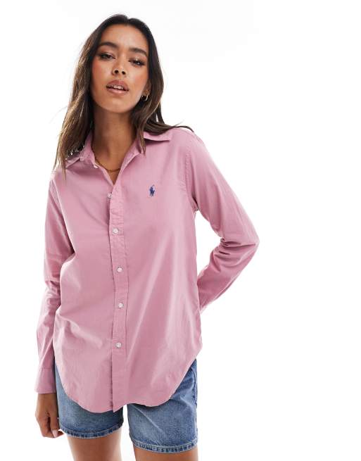 Polo Ralph Lauren – Różowa koszula z bawełnianego diagonalu z logo