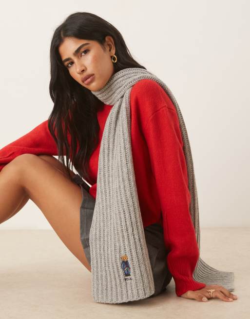 Polo Ralph Lauren – Szary wełniany szalik z logo Bear