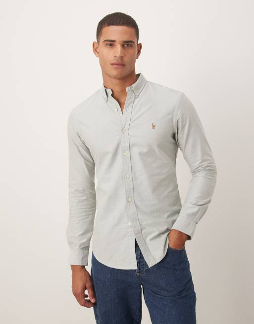 Polo Ralph Lauren – Zielona dopasowana koszula oxford z logo