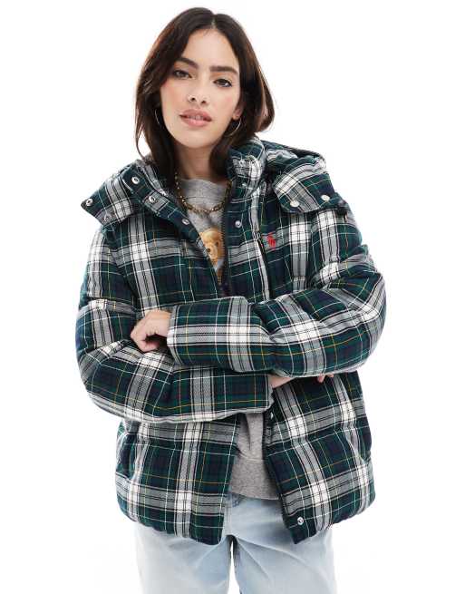 Polo Ralph Lauren – Zielona ocieplana kurtka w kratę z logo