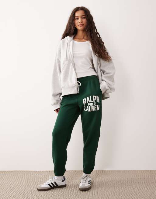 Polo Ralph Lauren – Zielone joggersy ze ściągaczami i logo