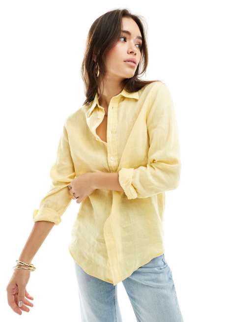 Polo Ralph Lauren – Żółta lniana koszula z logo