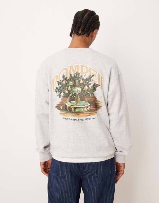 Prohibited – Pompeii Fountain – Jasnoszara bluza z logo z grafiką, okrągłym dekoltem i nadrukiem na plecach