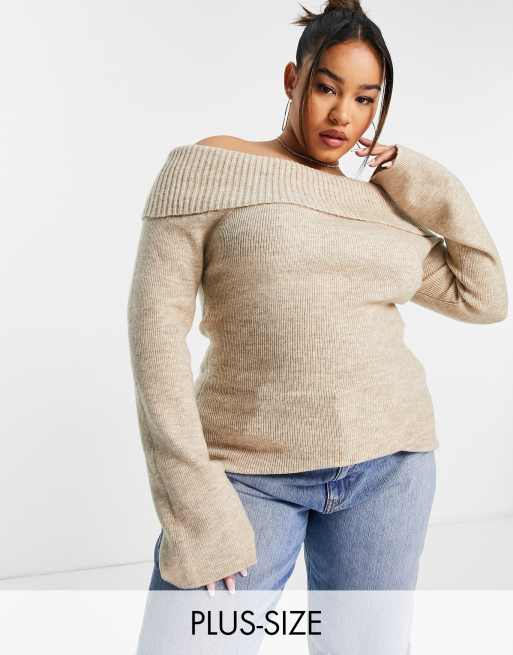 Pretty Lavish Curve – Beżowy dzianinowy top z dekoltem bardot