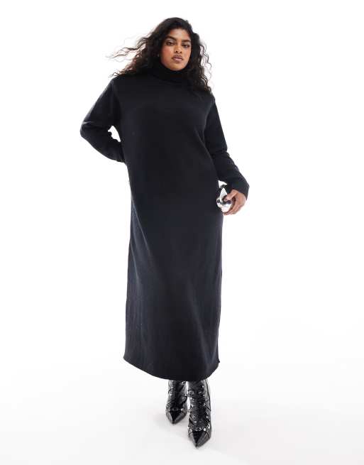 Pretty Lavish Curve – Czarna dzianinowa sukienka maxi z golfem
