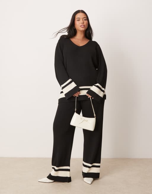 Pretty Lavish Curve – Czarny dzianinowy zestaw z kontrastowymi wstawkami