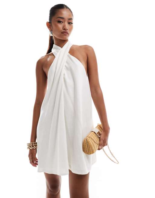 Pretty Lavish – Biała sukienka mini o prostym kroju ze skrzyżowanymi paskami