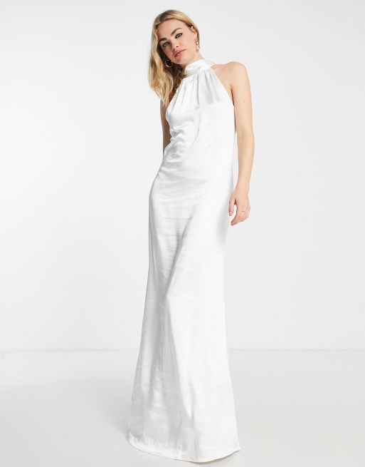Pretty Lavish Bridal – Satynowa sukienka maxi z golfem w kolorze kości słoniowej