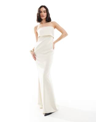 Pretty Lavish Bridesmaid – Julia – Kremowa sukienka maxi z warstwowym dekoltem bandeau z krepy