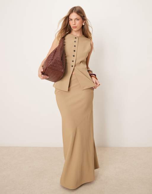Pretty Lavish – Camelowa asymetryczna spódnica maxi, część zestawu