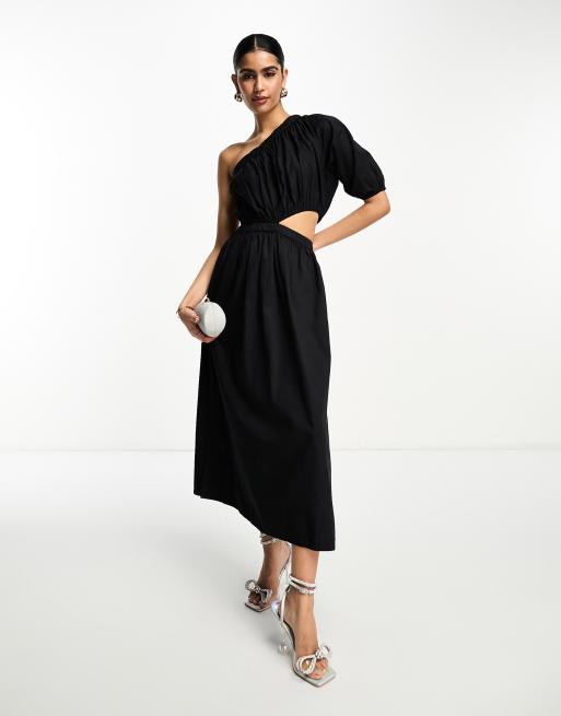 Pretty Lavish – Czarna luźna asymetryczna sukienka midaxi z wycięciem