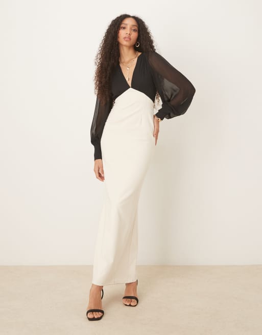 Pretty Lavish – Czarno-biała, kontrastowa sukienka maxi z balonowymi rękawami