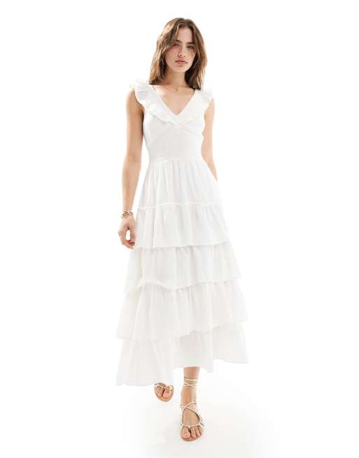 Pretty Lavish – Kremowa bawełniana sukienka midaxi z falbanką