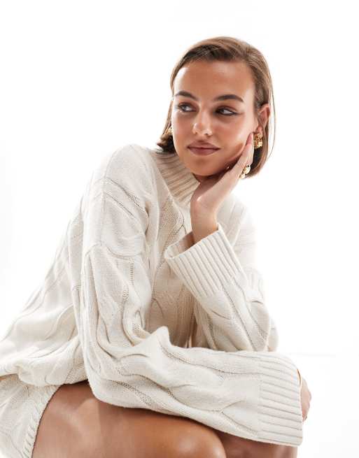 Pretty Lavish – Kremowy sweter z golfem z dzianiny o warkoczowym splocie, część zestawu
