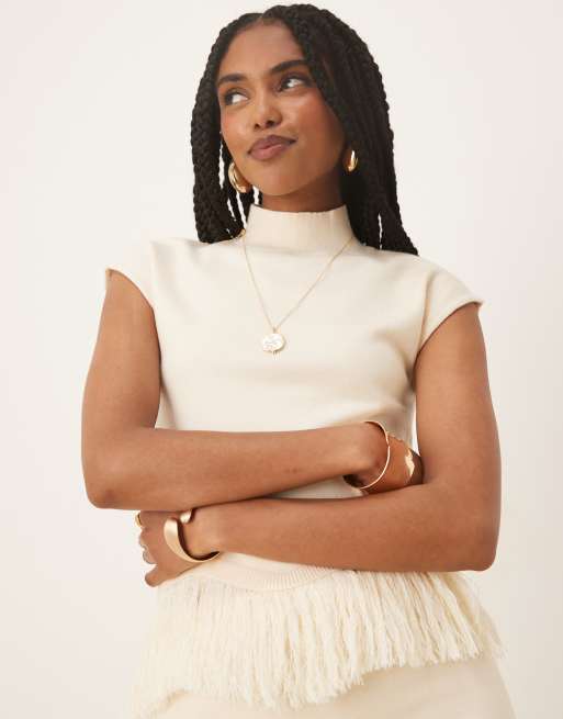 Pretty Lavish – Orlendina – Kremowy top z frędzlami, część zestawu