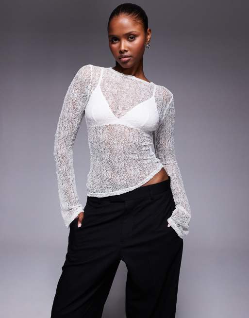 Princess Polly – Dulaney – Biały prześwitujący top fakturowany z rozszerzanymi rękawami