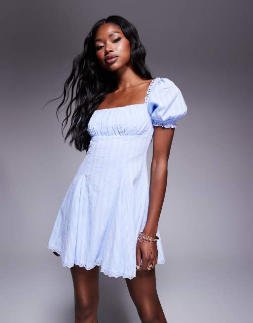 Princess Polly – Niebieska sukienka mini z bufkami i koronkowym wykończeniem