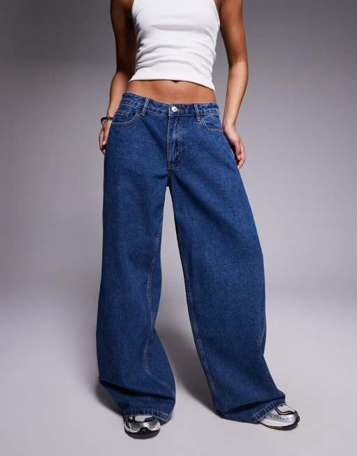 Princess Polly – Ramos – Ciemnoniebieskie jeansy z szerokimi nogawkami i obniżonym stanem