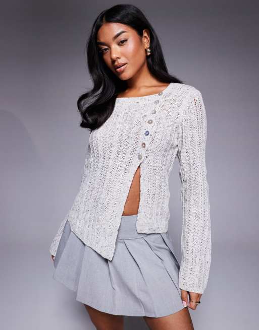 Princess Polly – Szary kardigan z asymetrycznym zapięciem na guziki