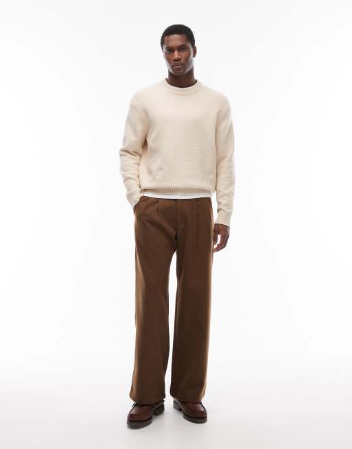 Prohibited – Brązowe spodnie o wełnianym wyglądzie z podwójnymi zakładkami