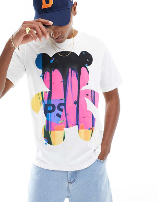 Paul Smith – Biały T-shirt z dużym nadrukiem na piersi