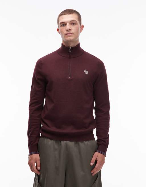 Paul Smith – Bordowa bluza z zamkiem pod szyją i logo z zebrą