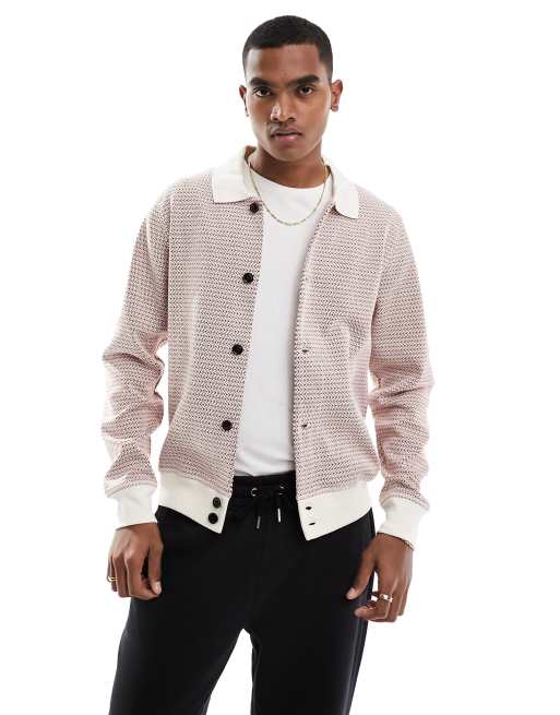 Paul Smith – Czerwony fakturowany kardigan dzianinowy z kołnierzem we wzór