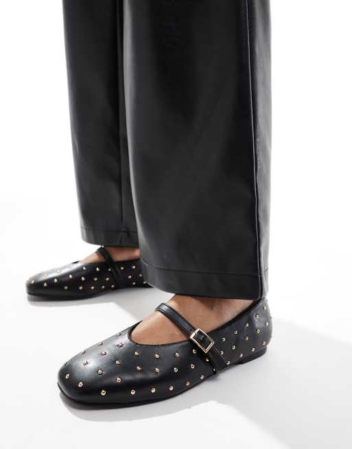 Public Desire Wide Fit – Dorina – Płaskie czarne balerinki z ćwiekami
