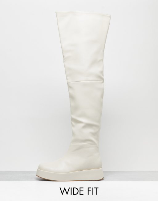 Public Desire Wide Fit – Rosie – Płaskie kremowe kozaki za kolano