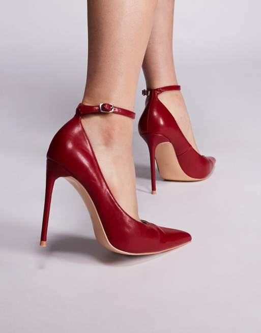 Public Desire – Chantilly – Czerwone buty na wysokim obcasie z paskiem nad kostką