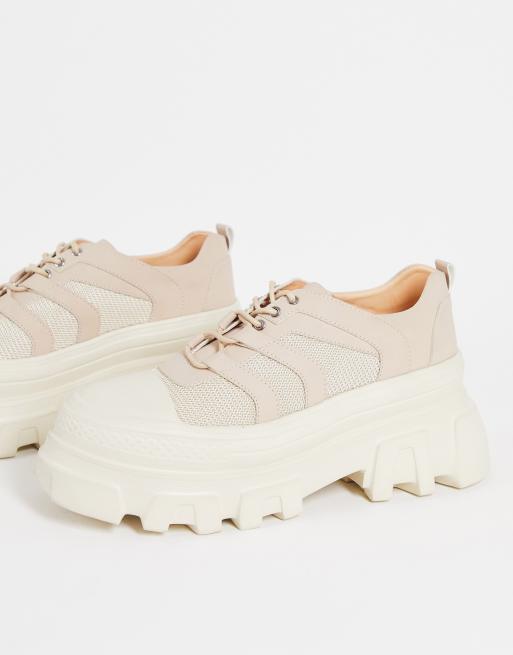 Public Desire – Hault – Beżowe sznurowane buty na masywnej podeszwie