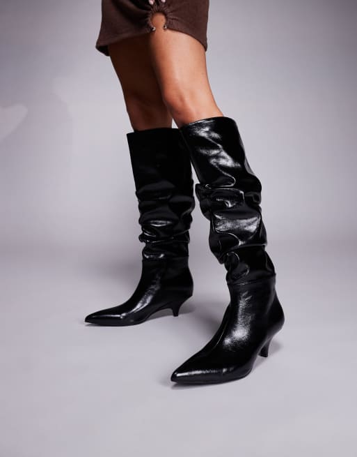 Public Desire – La Dolce Vita – Marszczone czarne kozaki do kolan na obcasie-kaczuszce