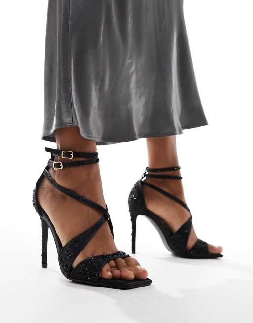 Public Desire – Moana – Czarne zdobione sandały na wysokim obcasie – tylko w ASOS