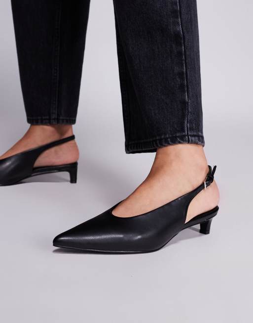 Public Desire – Saskia – Czarne buty na obcasie-kaczuszce z paskiem za piętą