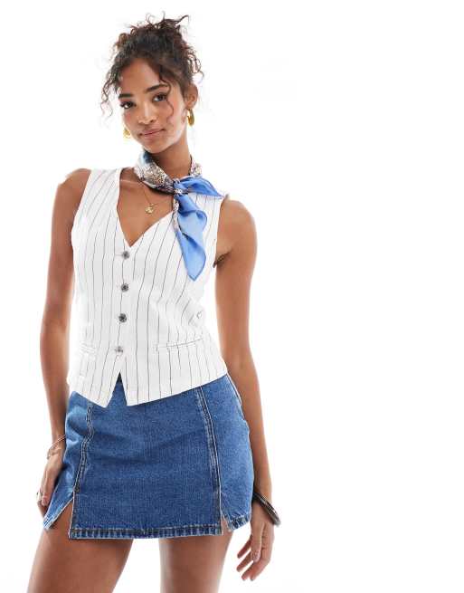 Pull&Bear – Biała kamizelka jeansowa w prążki