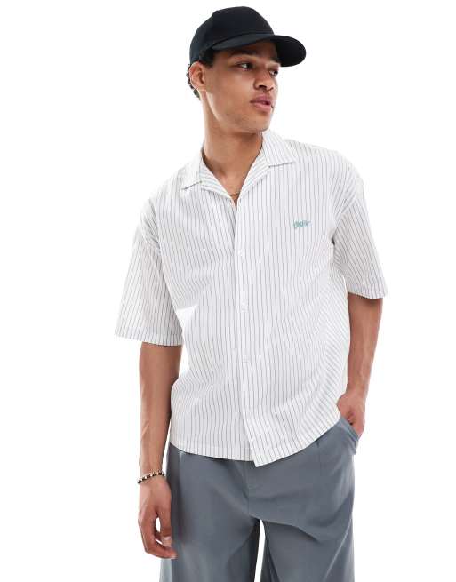 Pull&Bear – Biała koszula o pudełkowym kroju w paski