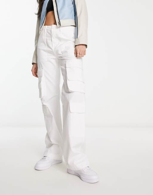 Pull&Bear – Białe bojówki z kieszeniami