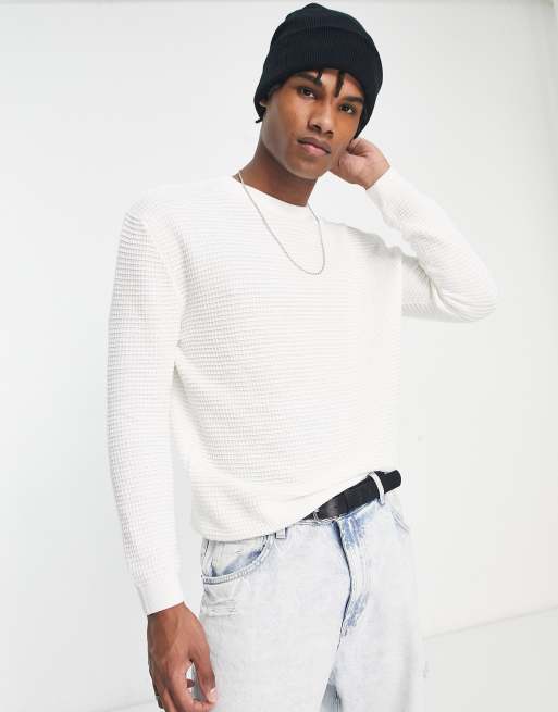 Pull&Bear – Biały sweter z dzianiny o splocie waflowym