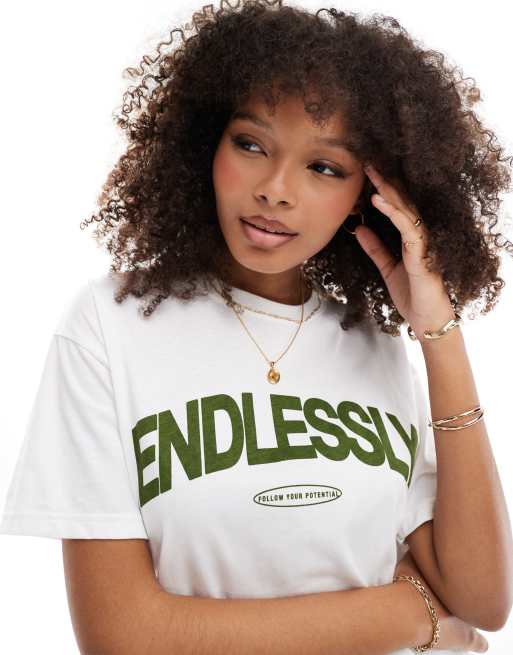 Pull&Bear – Biały T-shirt z grafiką Endlessly