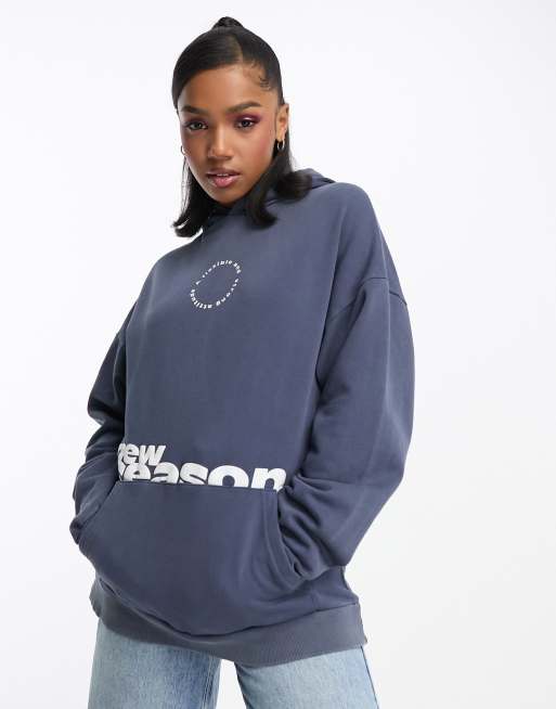 Pull&Bear – Bluza oversize z kapturem i nadrukiem w spranym niebieskim kolorze