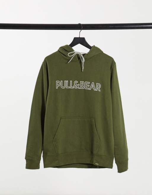 Pull&Bear – Bluza z kapturem z logo w kolorze khaki