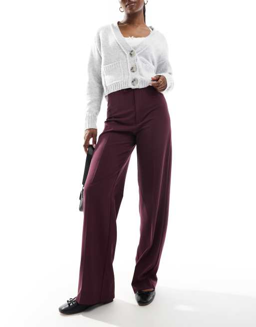 Pull&Bear – Bordowe dopasowane spodnie z wysokim stanem i szerokimi nogawkami