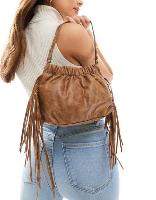 Pull&Bear – Brązowa sprana torebka typu worek w stylu boho