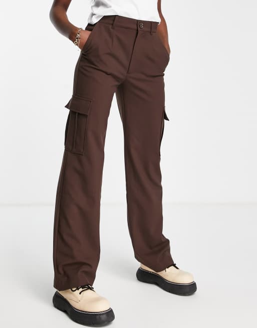 Pull&Bear – Brązowe bojówki z prostymi nogawkami i wysokim stanem