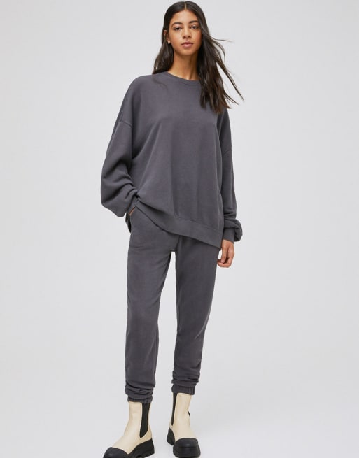 Pull&Bear – Ciemnoszary zestaw z joggersami i bluzą dresową oversize