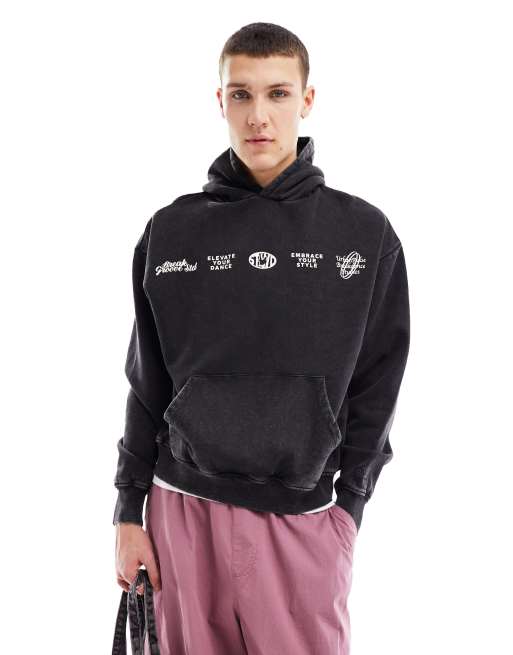 Pull&Bear – Czarna bluza z kapturem i grafiką z przodu