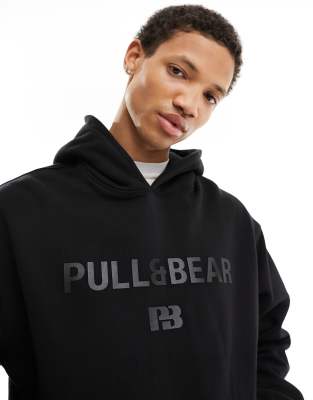 Pull&Bear – Czarna bluza z kapturem z nadrukiem