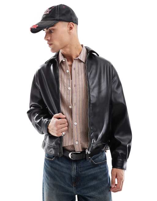 Pull&Bear – Czarna kurtka bomberka z imitacji skóry