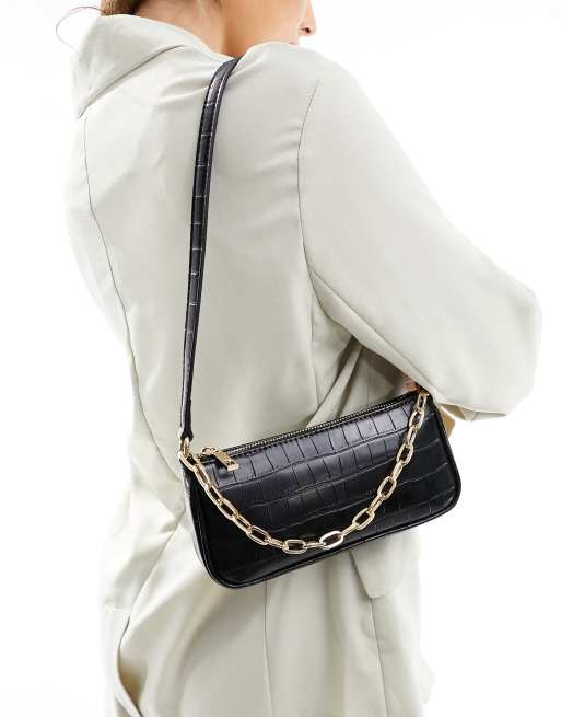 Pull&Bear – Czarna torebka na ramię we wzór skóry krokodyla i łańcuszkiem