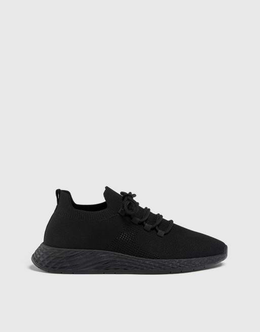 Pull&Bear – Czarne buty sportowe z dzianiny